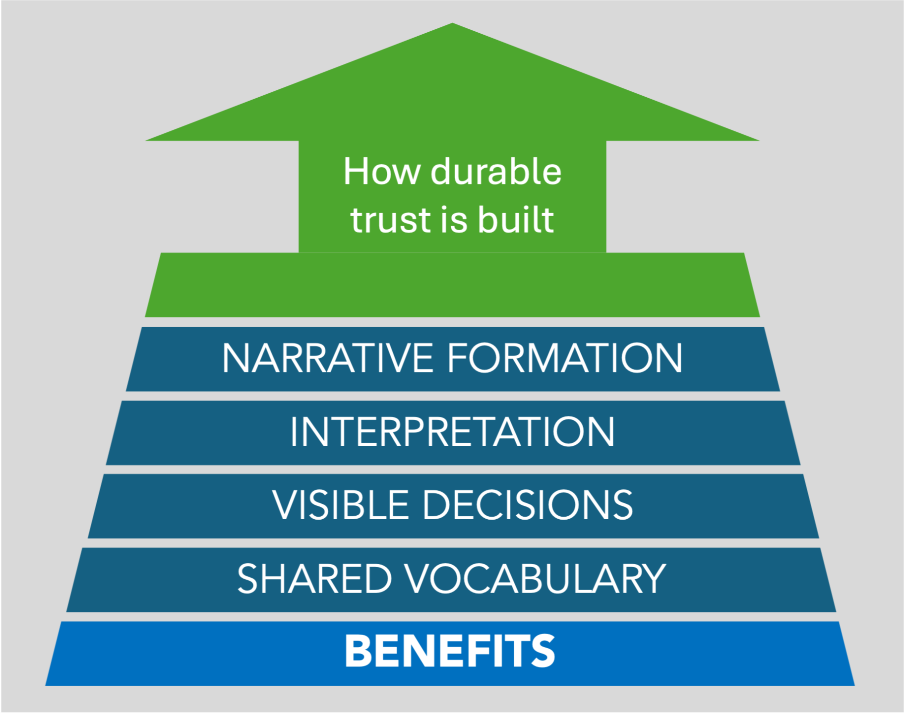 Building trust requires doing the work — and being able to account for it meaningfully. Each of these creates capacity to do that.
